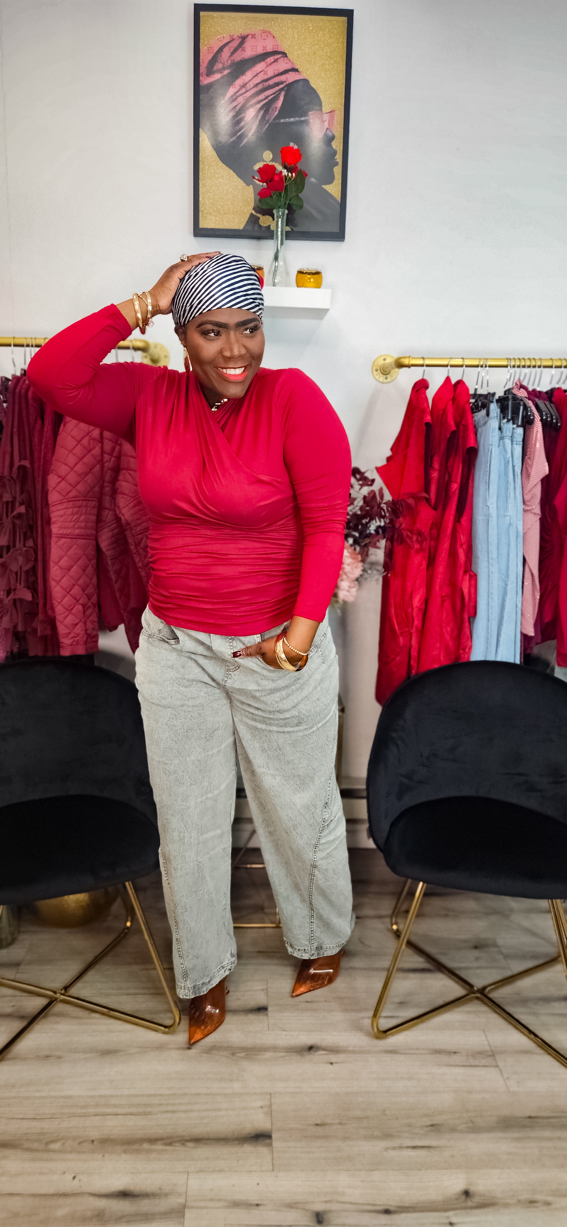 Merlot Rust Oversized Washed Barrel Denim Pant